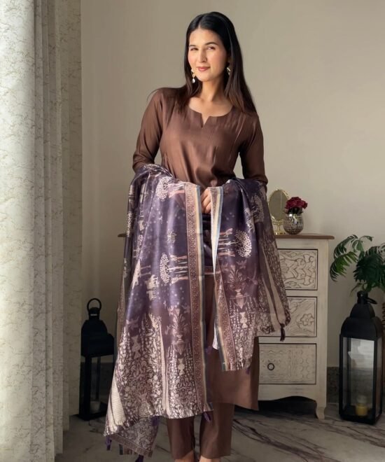 Stylish Harita Brown 3-Piece Suit Ensemble