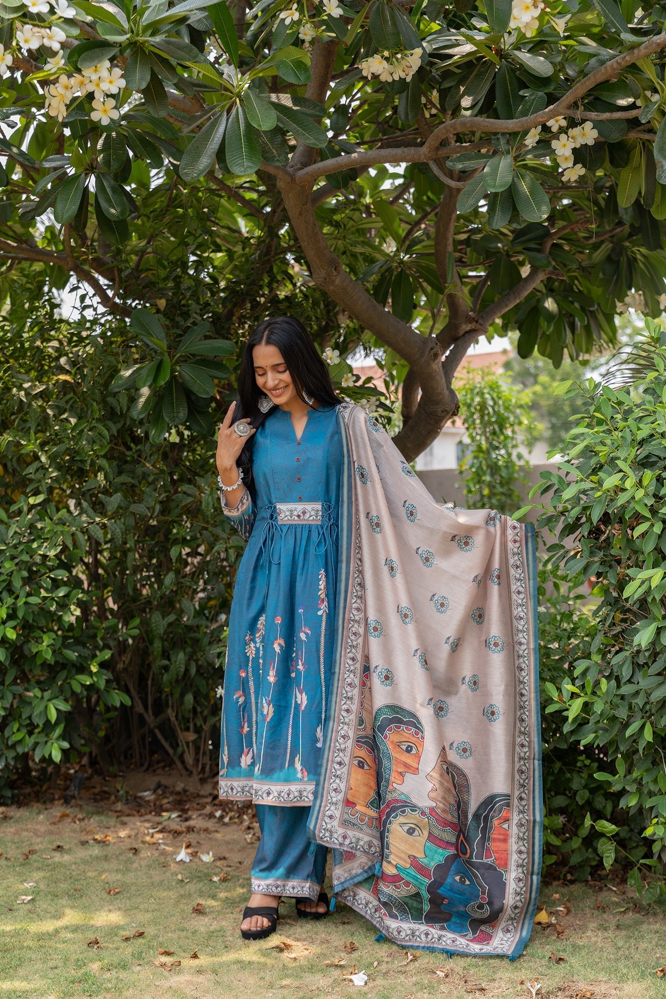 This gorgeous digitally printed dupatta Will be a perfect addition to your ethnic collection. The kalamkari print adds to the beauty of this concept. This dupatta is trendy yet a classic addition to your wardrobe.
