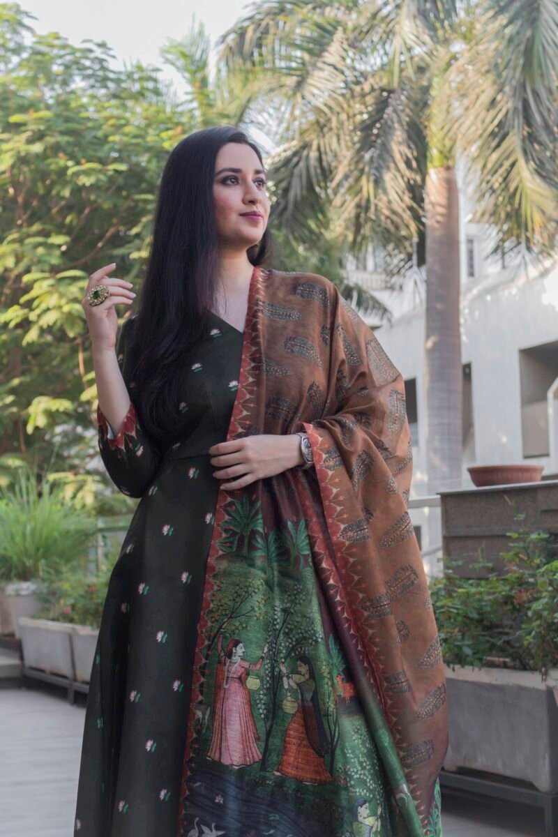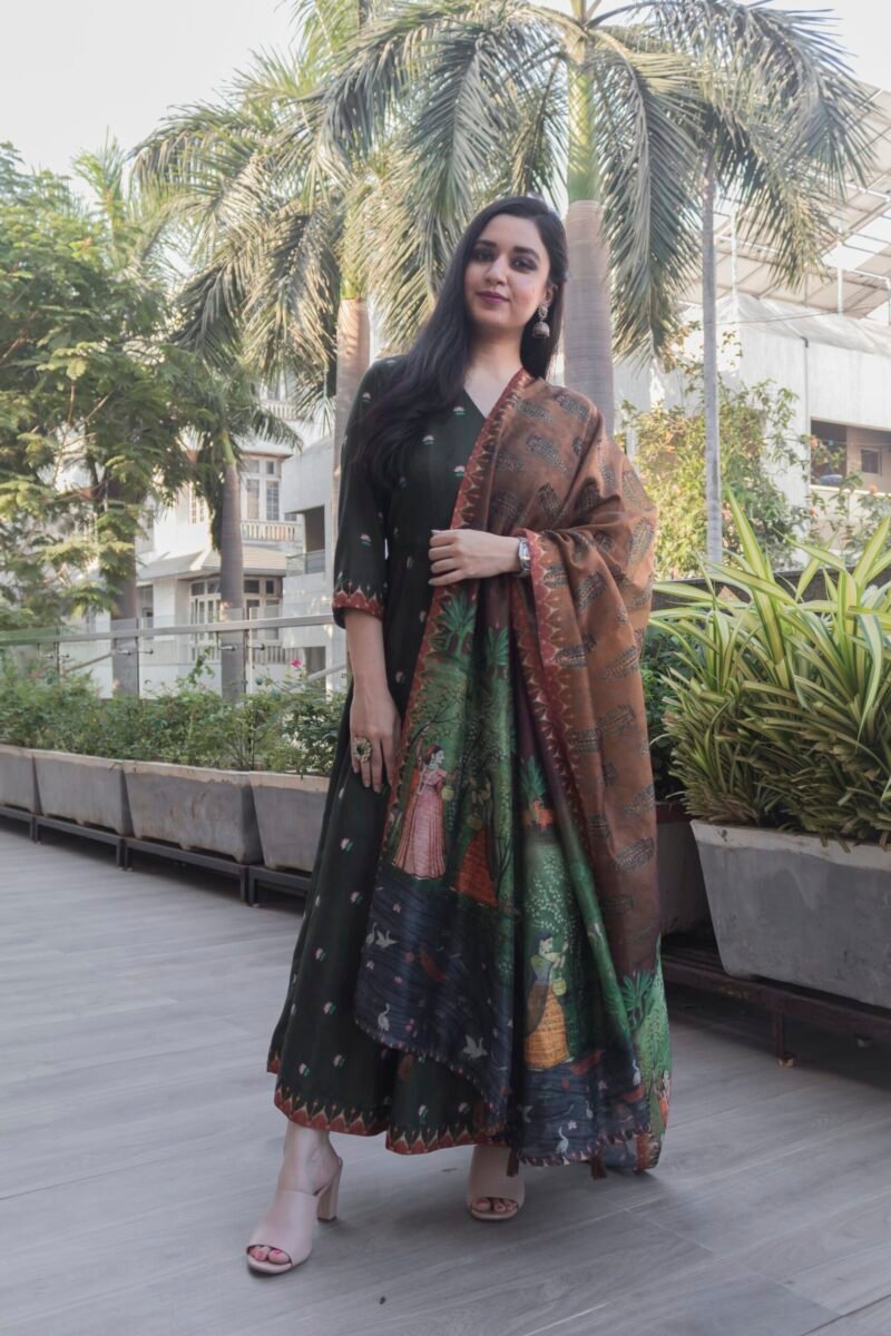 Be the first to review “Elegant Bottle Green Angrakha Dress by Lotus Pichwai” Cancel reply