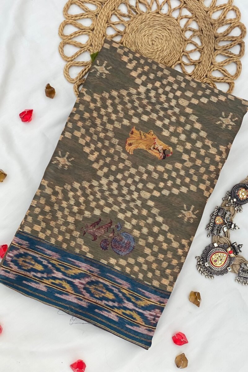 Discover the elegance of our latest Chanderi cotton sarees, now featuring exquisite Bandhej prints in a vibrant green hue. Each saree is adorned with a stunning pallu crafted in intricate ikkat prints.