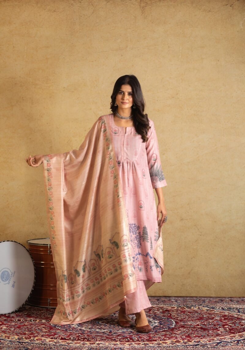 This gorgeous digitally printed dupatta Will be a perfect addition to your ethnic collection. The pichwai print adds to the beauty of this concept. Flowers gracing the border of the dupatta, like nature’s delicate touch. This dupatta is trendy yet a classic addition to your wardrobe.