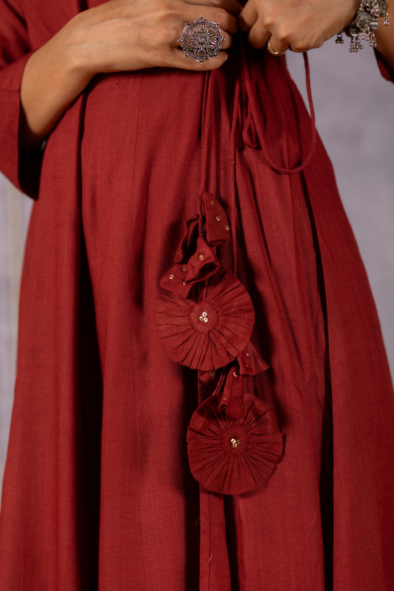 Be the first to review “Elegant Maroon Floral Angrakha Suit Set by Sana”