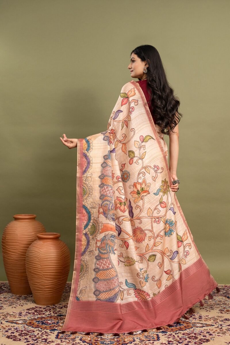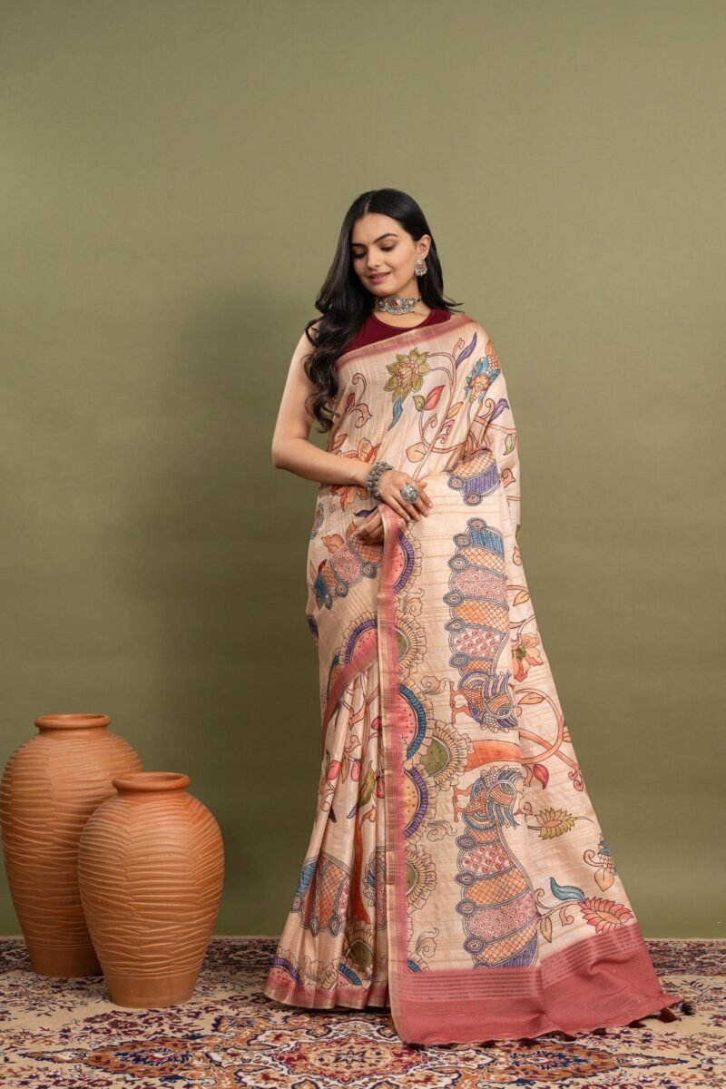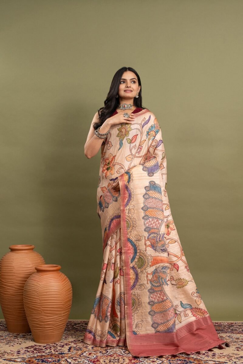 Elegant Mayura Kalamkari Saree – Traditional Artistry Meets Modern Style