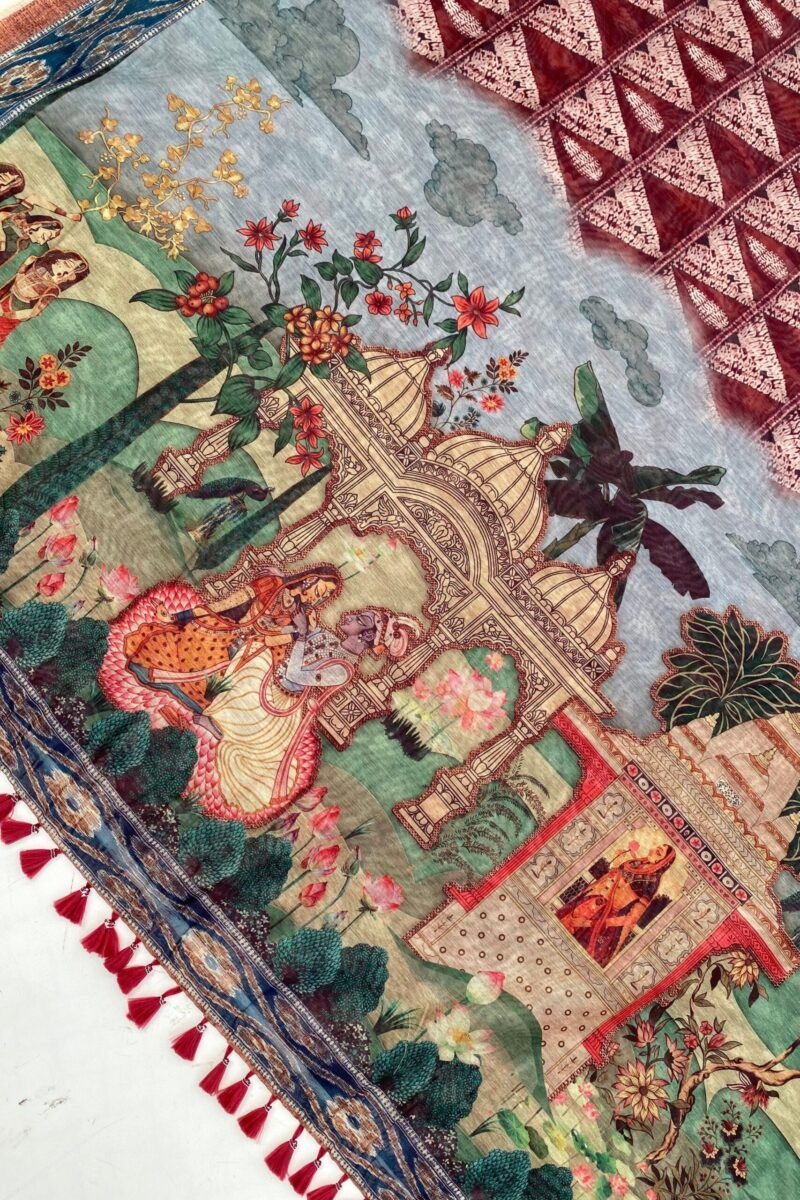 Elegant Ambara Kalamkari Dupatta – A Touch of Tradition