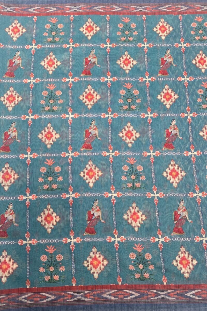 Discover the elegance of our latest Chanderi cotton sarees, now featuring exquisite figure prints in a vibrant rama hue. Each saree is adorned with a stunning pallu crafted in intricate ikkat prints.