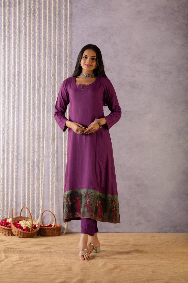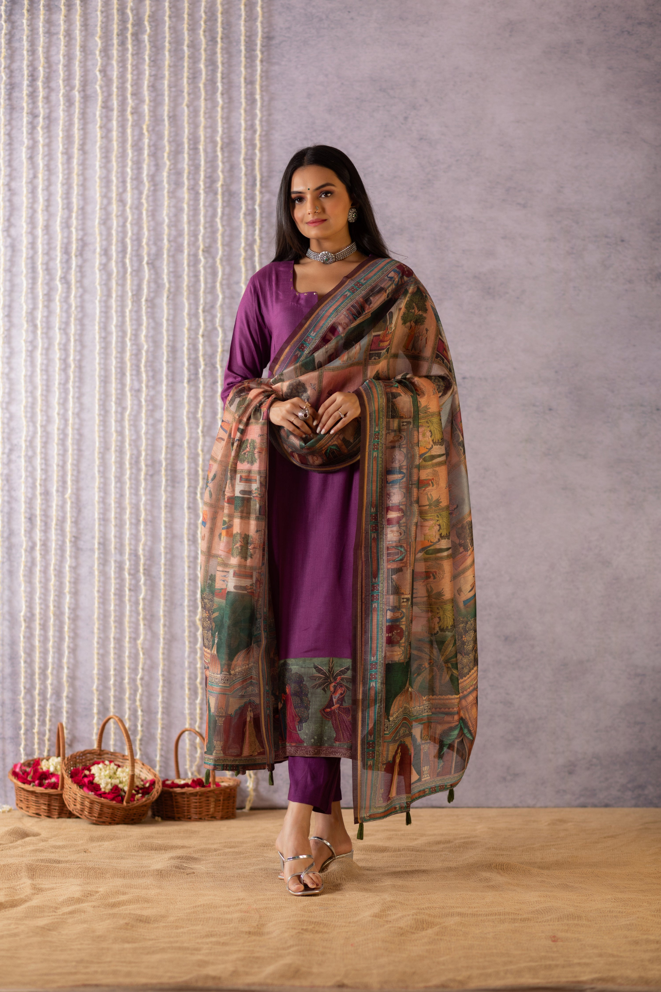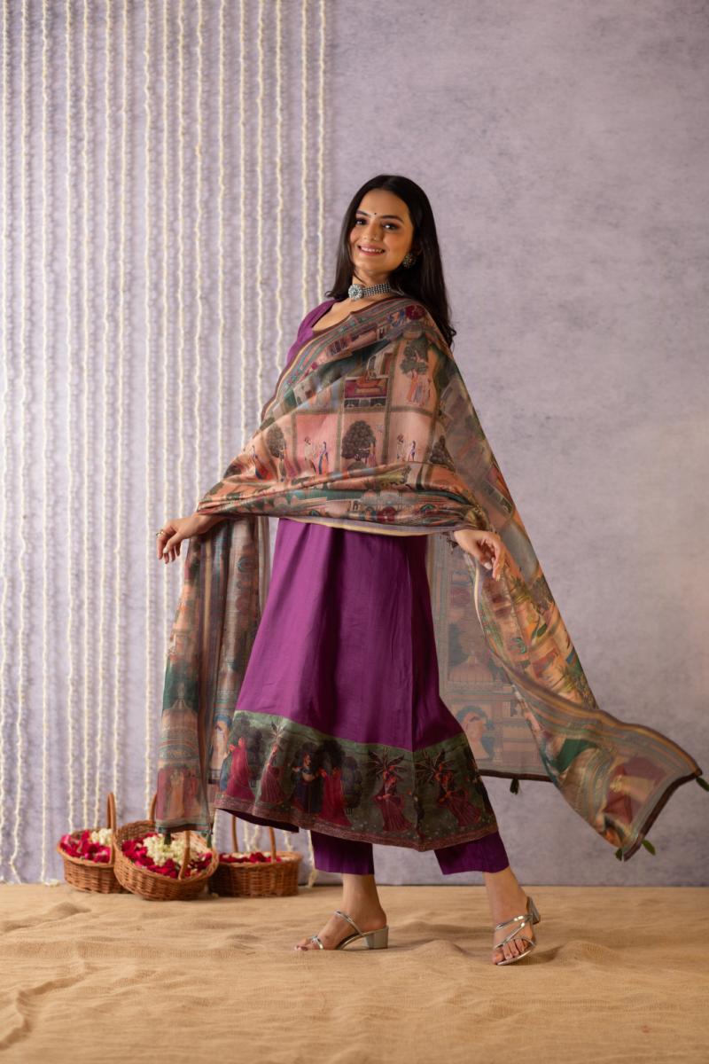 art:phad painting, art:pichwai, art:solid, beautiful suit set, Bhagalpuri Suit Set, color:multi, color:purple, designer suit, eng745, favourite suit, festive suit, not for sale, pichwai suit set, piwchai suit, pure bhagalpuri, purple suit, salwar suit, soild suit, solid suit, solid suit set, suit, suit set, suit sets, three piece set, three piece suit