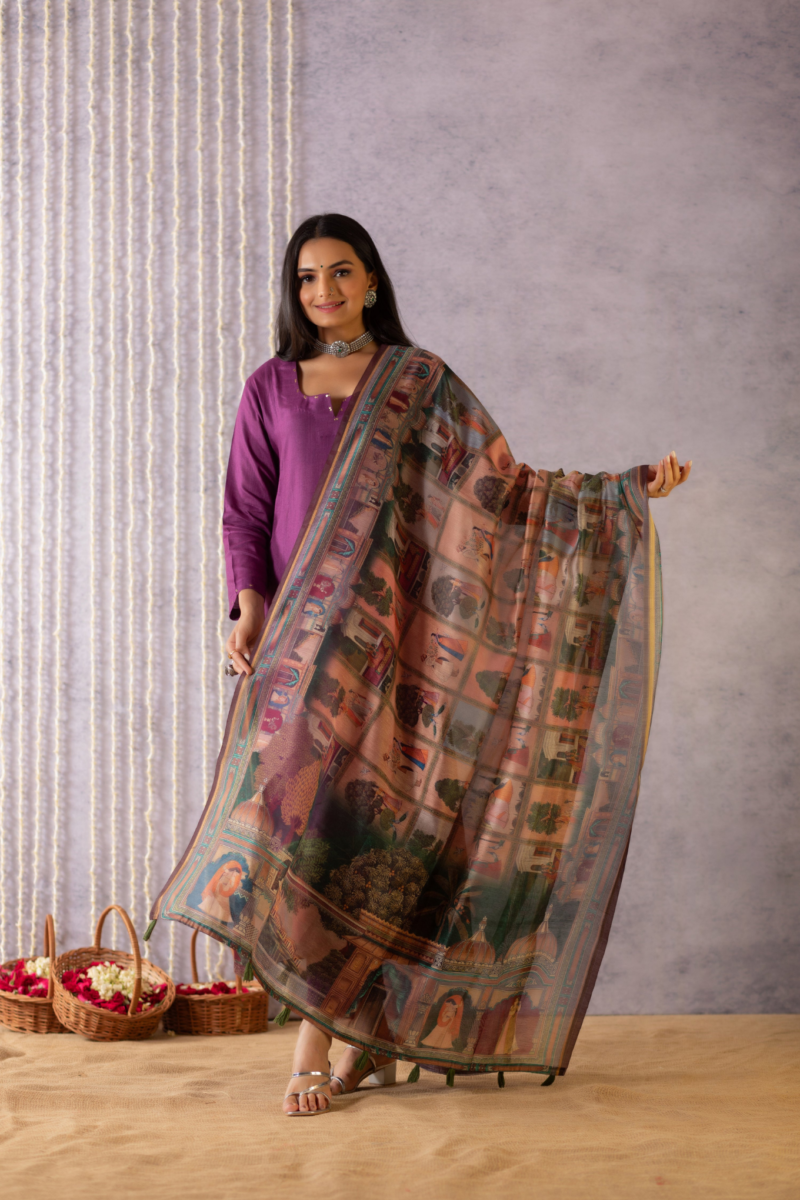 Elegant Gopi Phad Artwork Inspired Suit Set