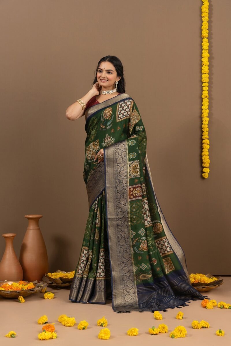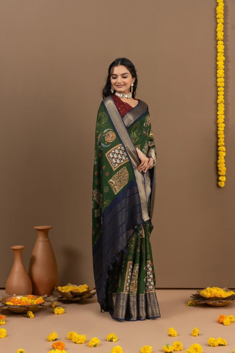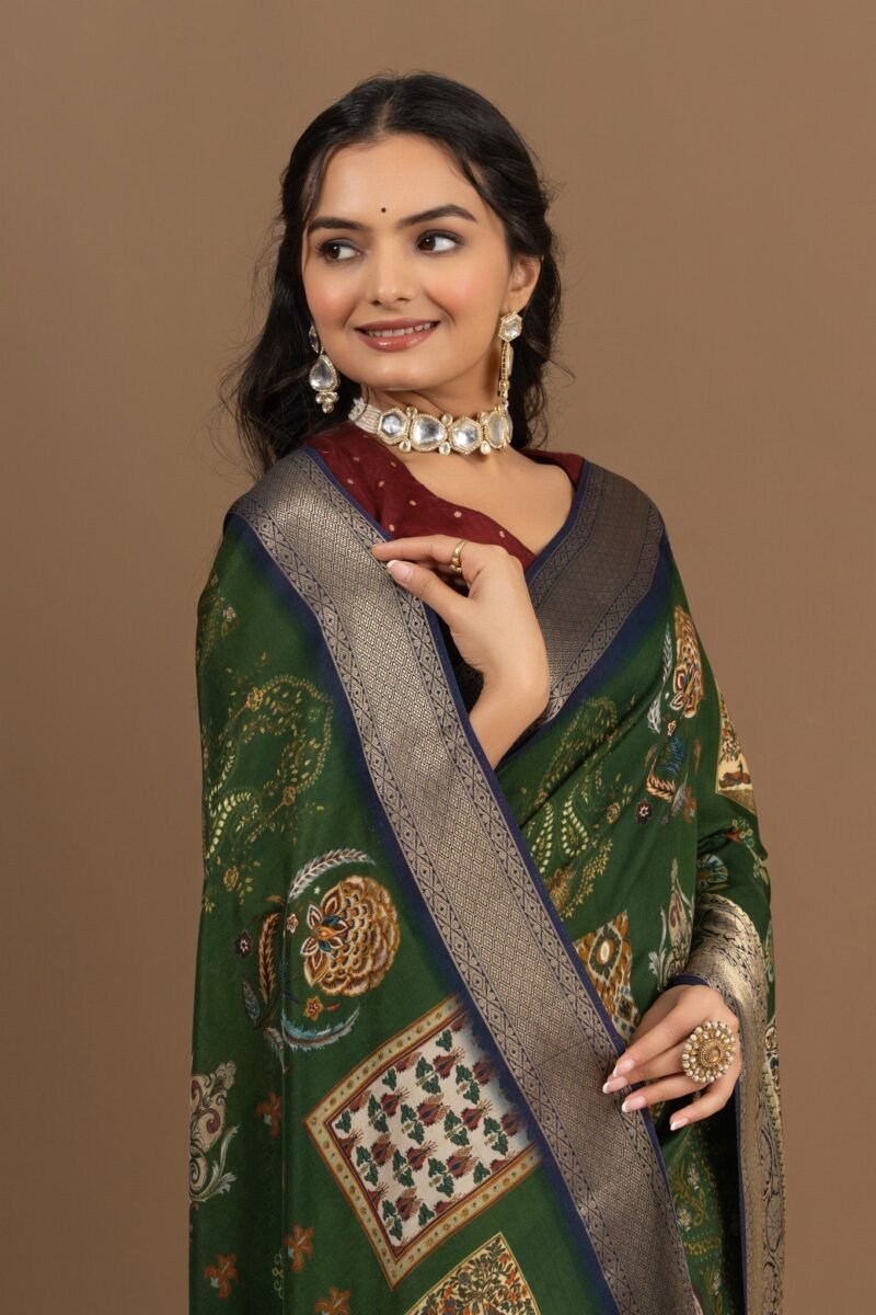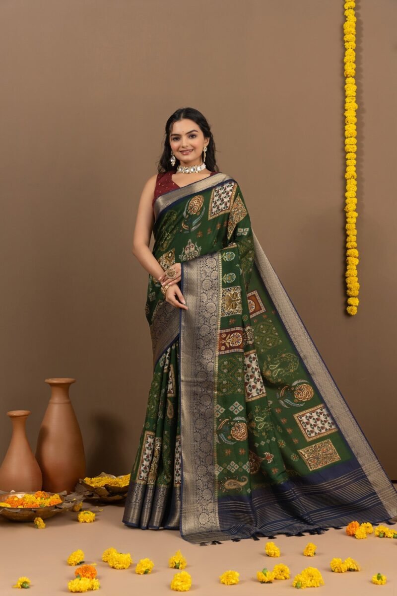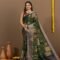 Enchanting Green Saree with Elegant Block Print Design
