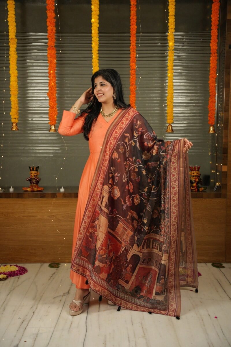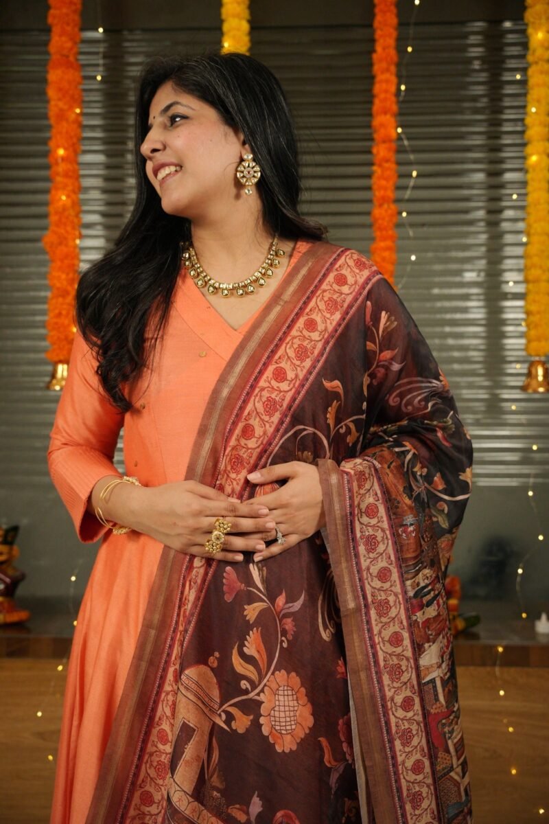 This gorgeous Angrakha pure bhagalpuri suit set is made with handcrafted fabric. Elevate your style with our exquisite dress featuring a delicate knot pattern adorning the left side of the kurta, adding a touch of charm and sophistication to your ensemble. The top and bottom are dyed with beautiful solid colours and come with a handloom cotton silk dupatta along with tassels on each end of the dupatta.