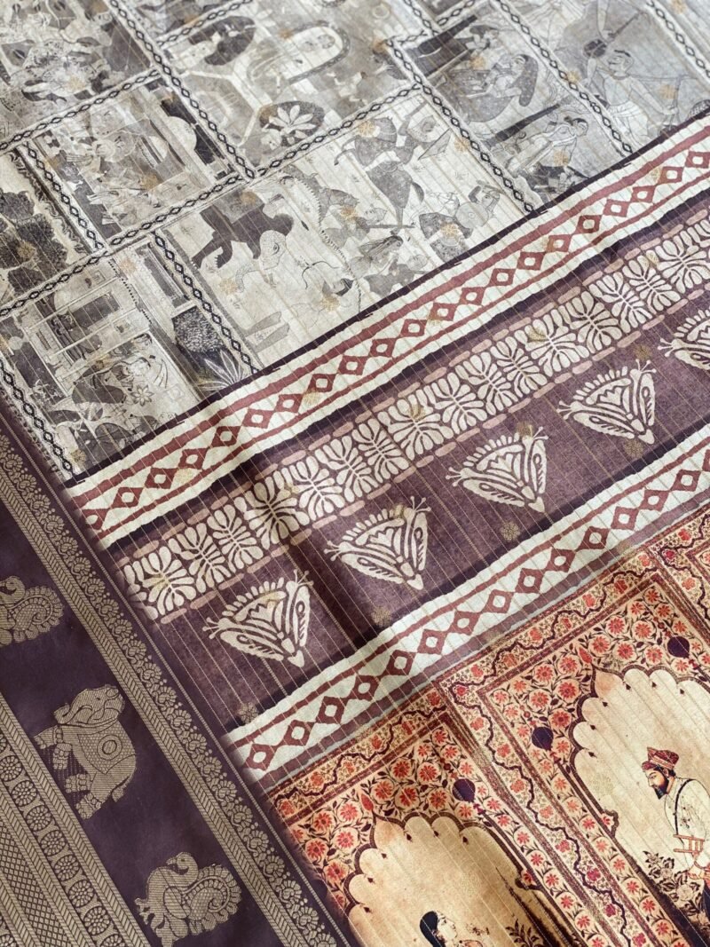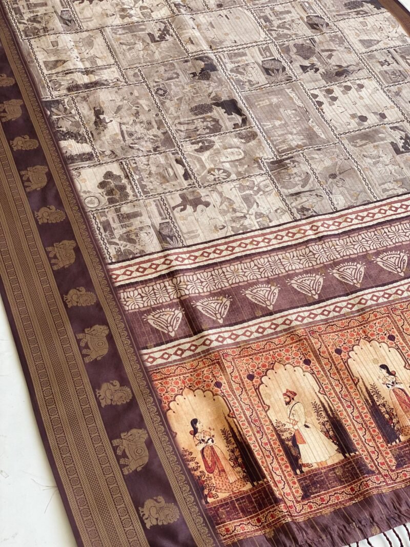 Experience the perfect blend of tradition and modernity with this Semi-Tussar silk saree. The saree features beautiful block prints, intricate geometric patterns, and regal Mughal-inspired designs that add an elegant touch to its look. The zari border with checks enhances its timeless charm. Crafted from soft and lightweight fabric, this saree drapes effortlessly, ensuring comfort and grace. Ideal for festive occasions, cultural events, or elegant evenings, this saree is a must-have for lovers of heritage-inspired fashion.