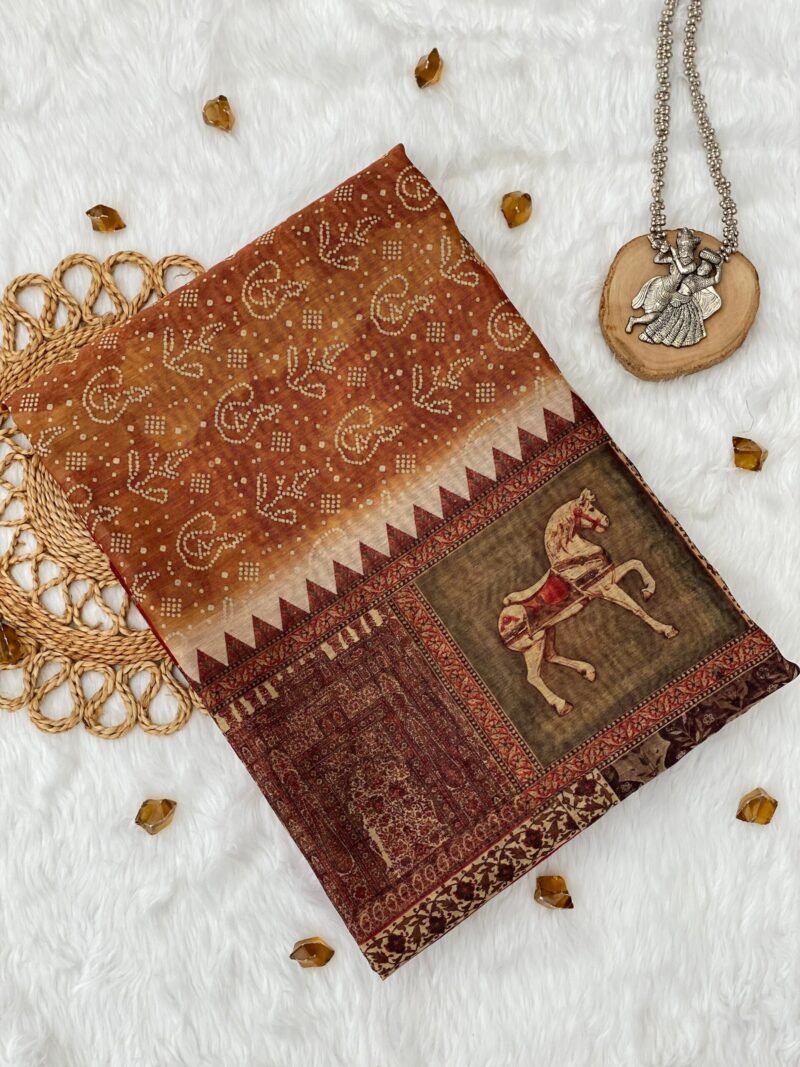 Stunning Surajmukhi Bandhej Block Print Saree for Timeless Elegance
