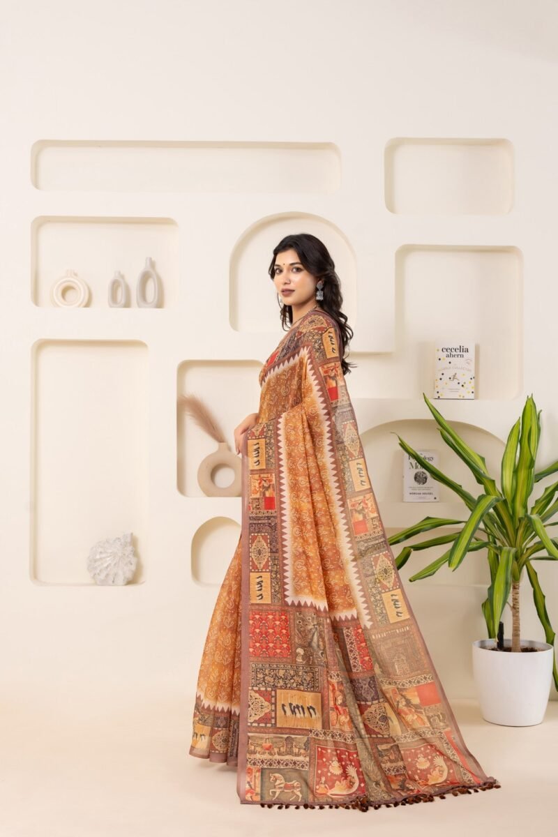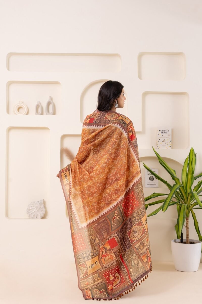 Discover the elegance of our latest Chanderi cotton sarees, now featuring exquisite Bandhani prints in a vibrant yellow colour. Each saree is adorned with a stunning Ikat print border and a pallu crafted in intricate block prints. The harmonious blend of traditional techniques and contemporary design makes these sarees a perfect choice for any occasion. With their beautiful overall prints and soft, breathable fabric, our Chanderi cotton sarees offer both comfort and style. The saree comes with contrast and an unstitched blouse.