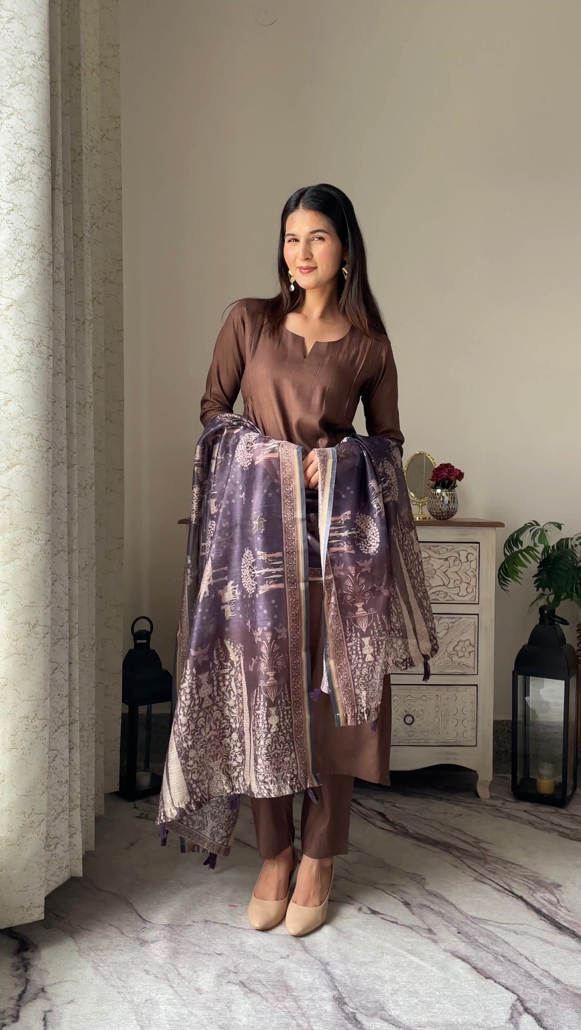 Stylish Harita Brown 3-Piece Suit Ensemble