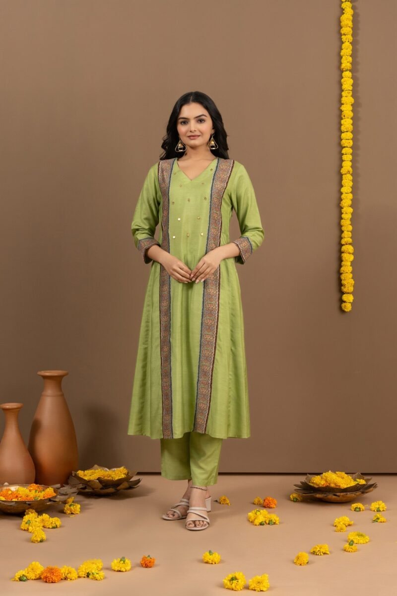 Vibrant Kia Pista Green Bhagalpuri Ensemble